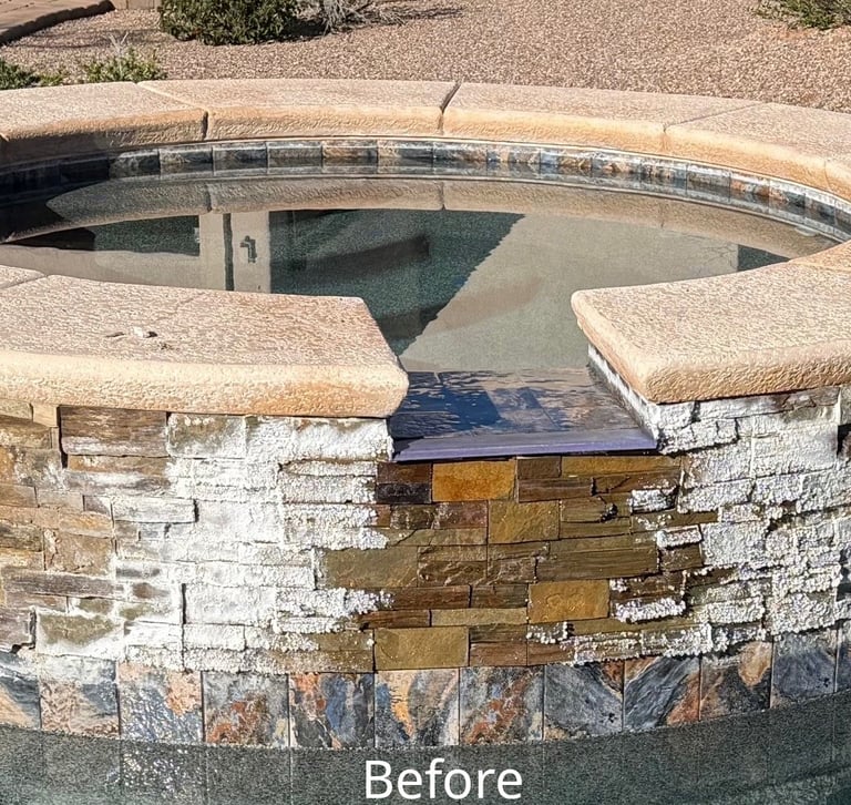 See how kieserite blasting removes calcium build-up to reveal pristine surfaces.
